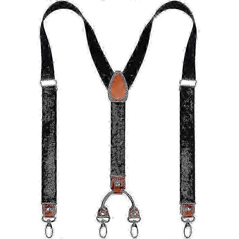 Mens Y-shaped Wide Heavy Duty Suspenders With 4 Metal Clips Adjustable Elastic Straps