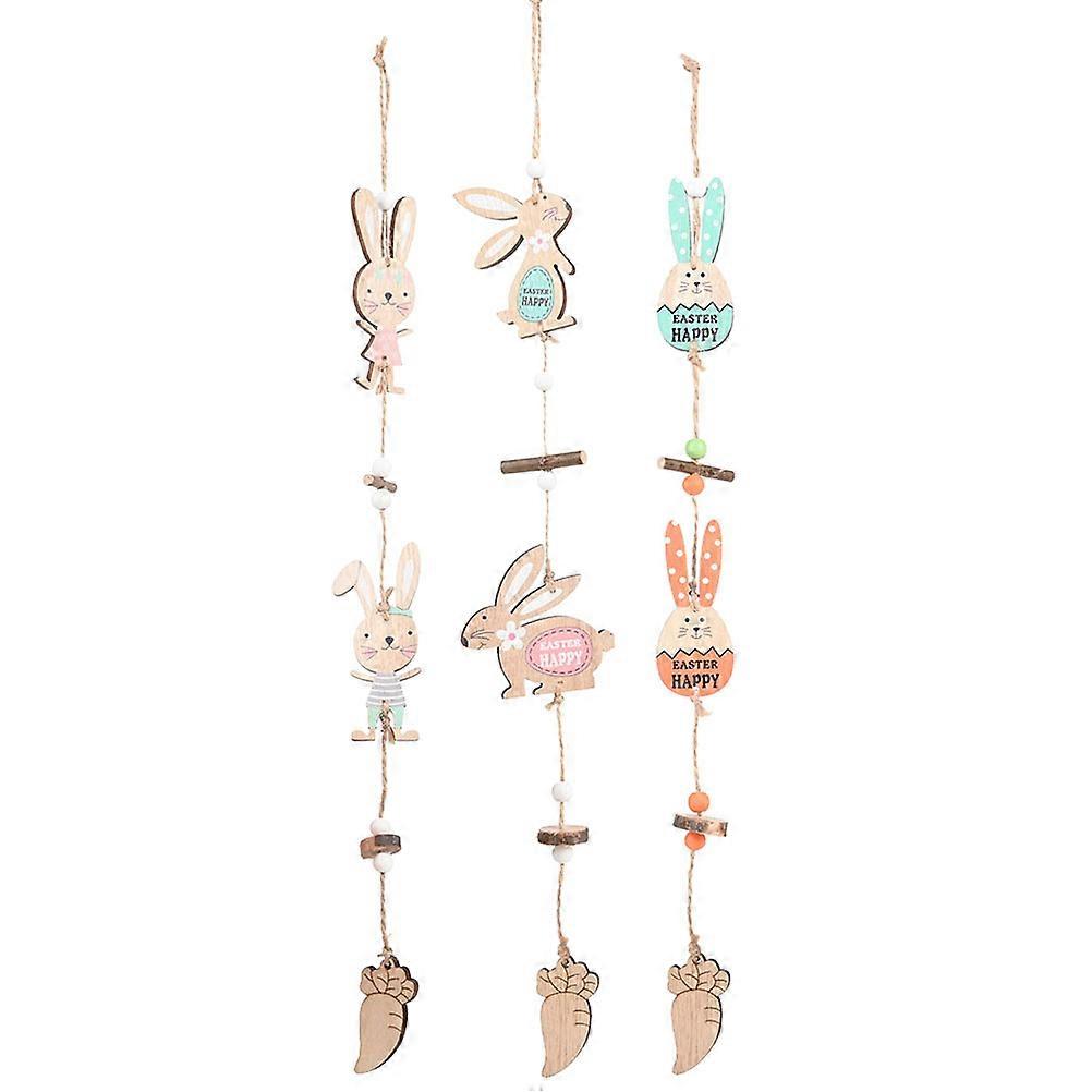Hanging Crafts Wood Rabbit Statue Decorative Accessory For Home 3Pcs 43*4.5cm