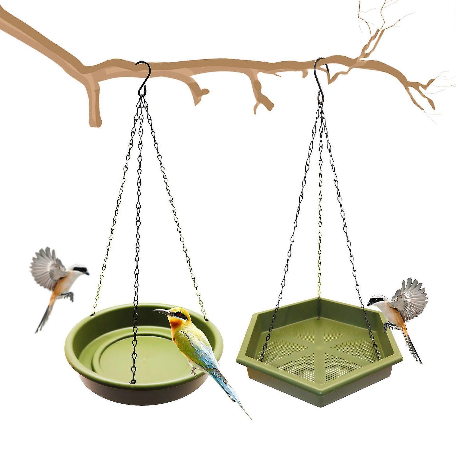 Hanging Bird Bath Hanging Seed Feeder Hexagon Bird Feeder & Round Bird Water Tray Durable Bird Food Container with Prevent Ant Hook Bird Supplies(1 se