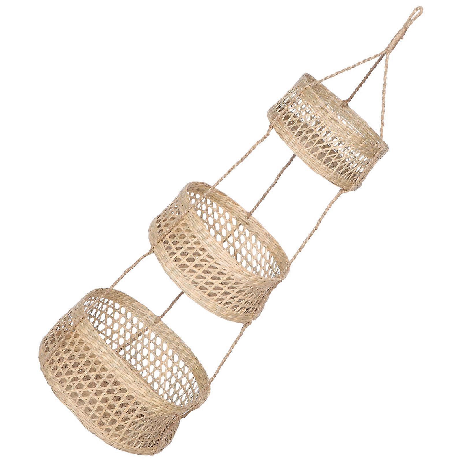 Hanging Vegetable Basket Kitchen Organizer Woven Design Storage 30x26.5cm Beige 1Pcs