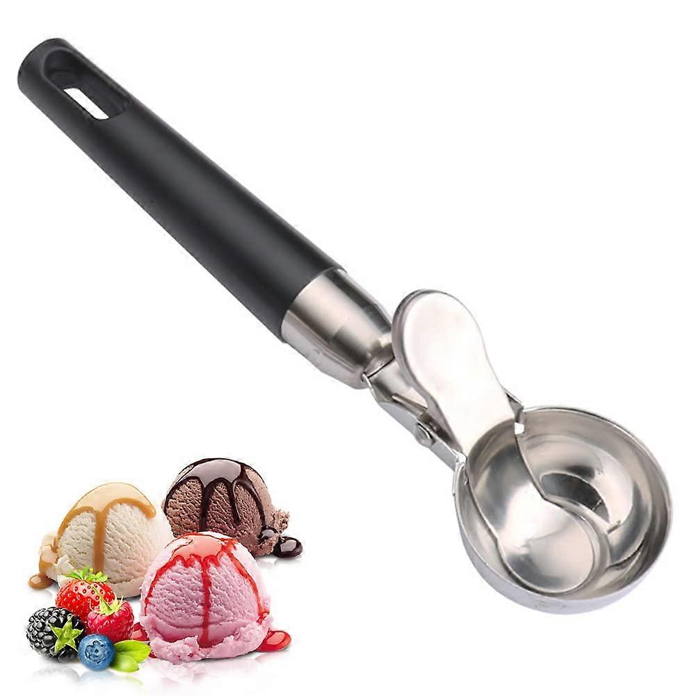 Ice Cream Scoop,Stainless Steel Cookie Fruit Dessert Scoop with Easy Trigger, Heavy Duty Sturdy Kitchen Tool, for Cookie Dough Baking,Black