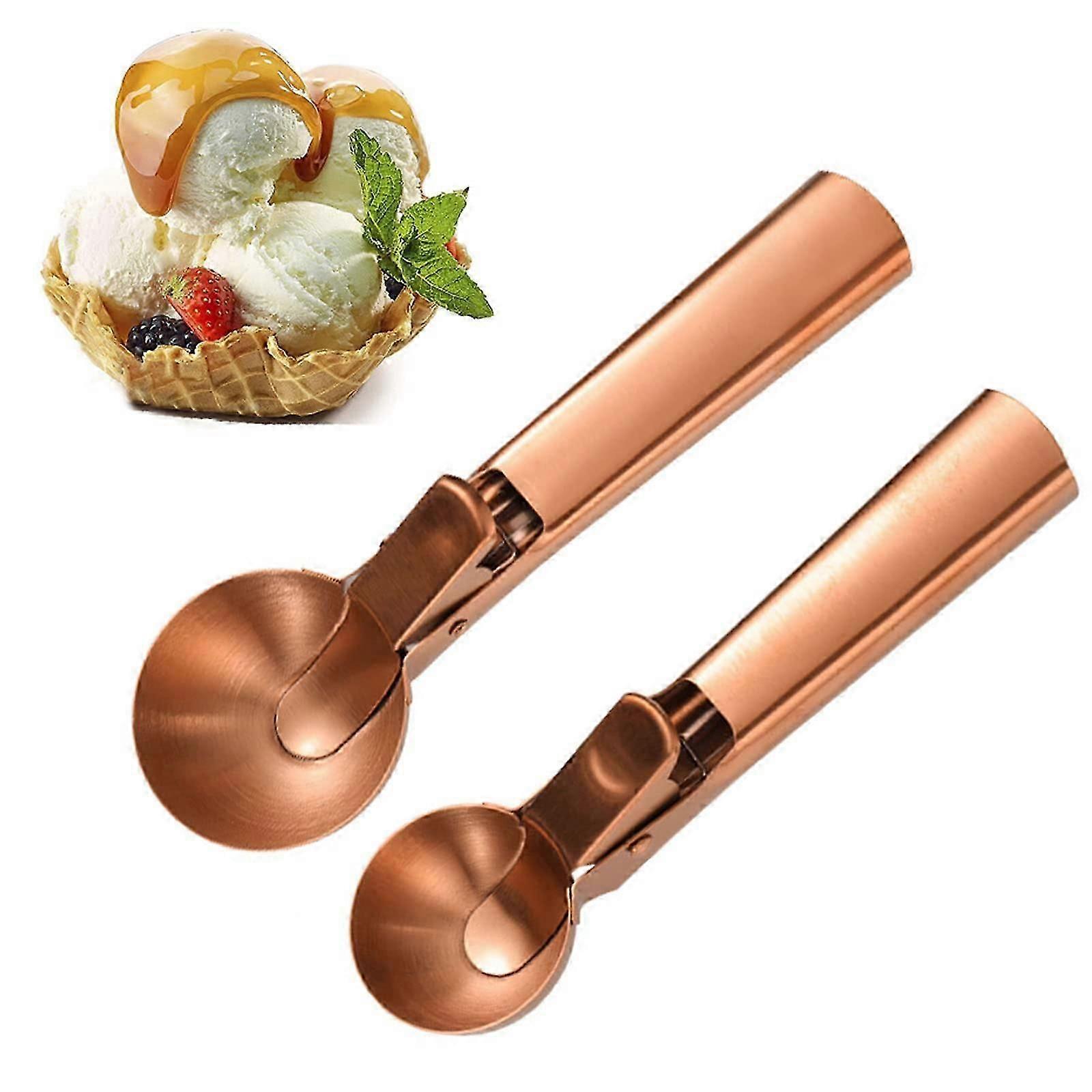 Ice Cream Scoop, 2Pcs Stainless Steel Rose Gold Cookie Scoop with Trigger Melon Baller Scooper Cones, Specialty Tools and Gadgets, Ice Cream Spoon