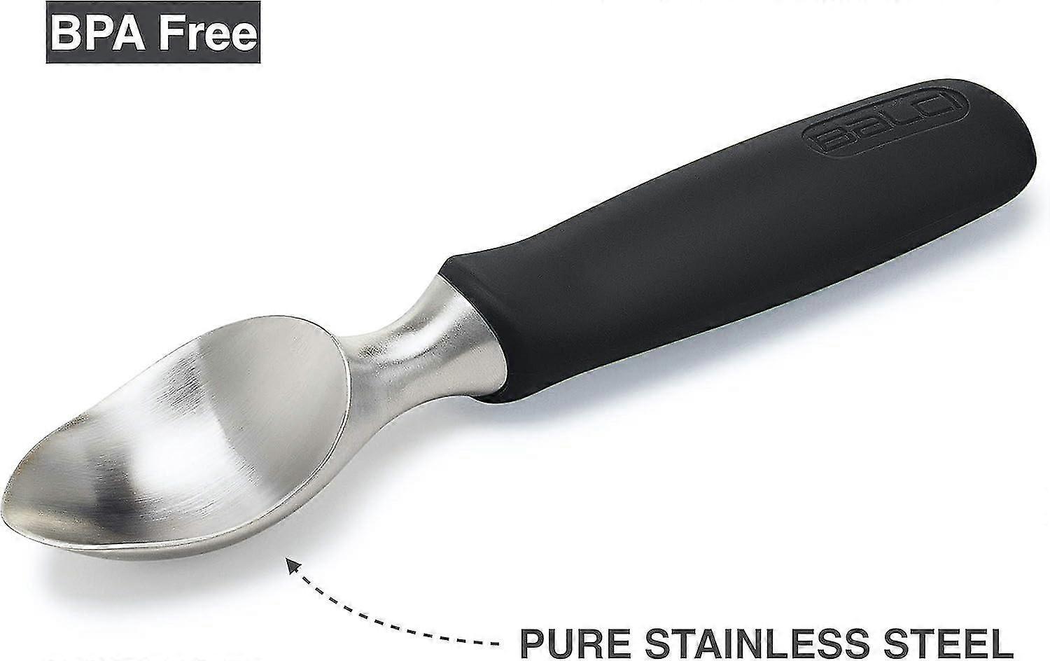 Ice Cream Scoop - Heavy Duty Stainless Steel Icecream Scooper With Non-Slip Rubber Grip - Professional Metal Ice-Cream Spade - Dishwasher Safe Black