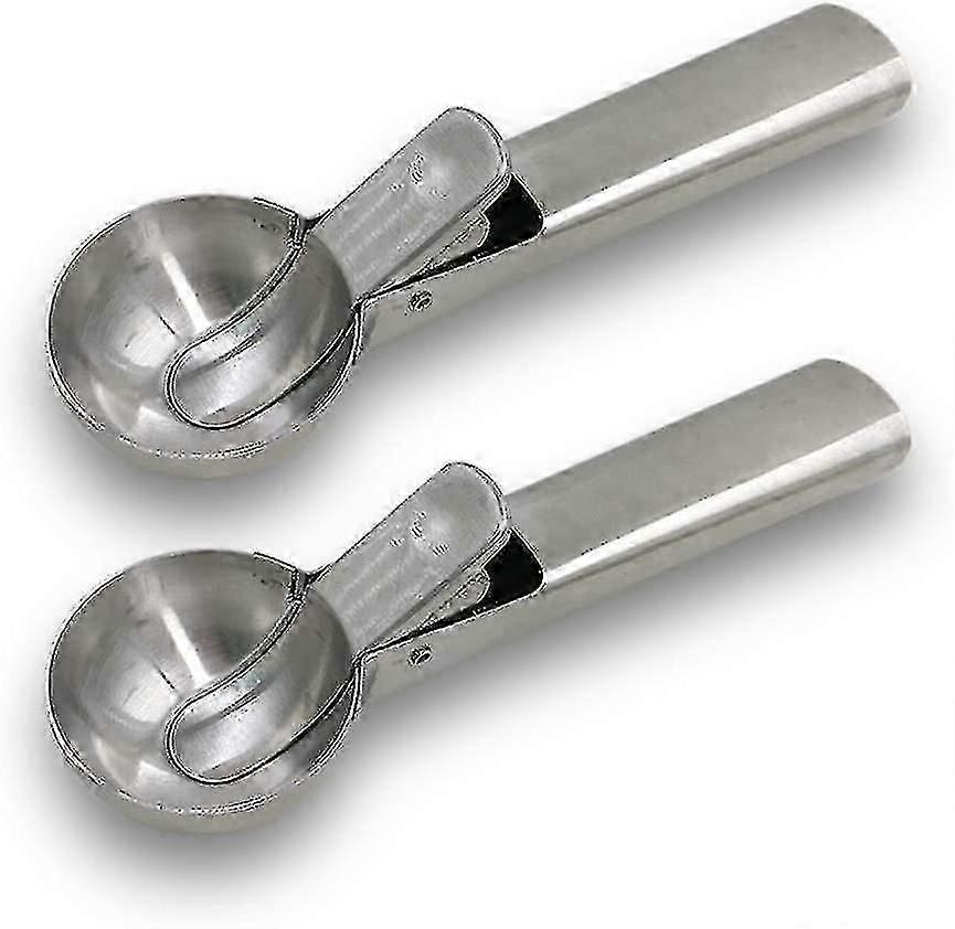 Solid Stainless Steel Ice Cream Scoop, 2 Packs Of Stainless Steel Ice Cream Spoon With Easy Trigger, Dipper For Fruits, Water Melon Scoop
