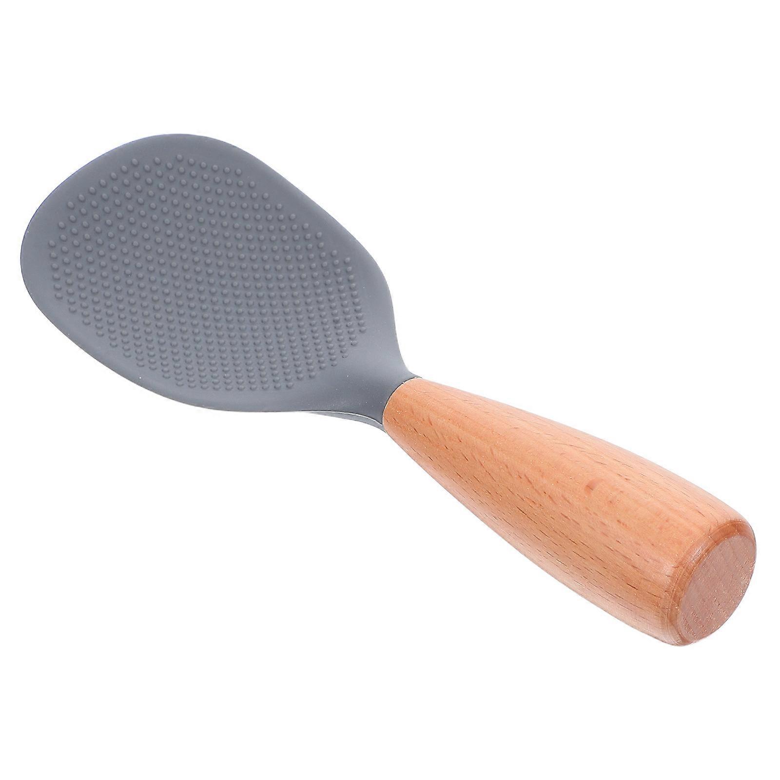 Heat Resistant Silicone Rice Scoop with Wooden Handle – Non Tip Serving Spoon for Rice Dishes, Non Stick, Easy Storage, Compatible with Rice Cookers