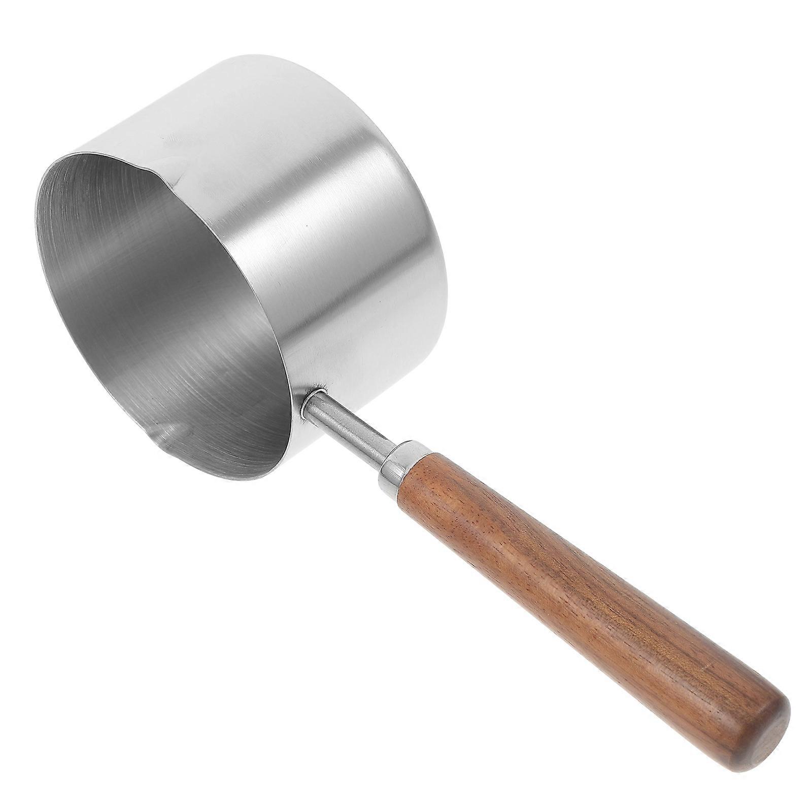 Stainless Steel Dog Food Scoop with Long Wooden Handle for Accurate Measuring in Kitchen Coffee Color
