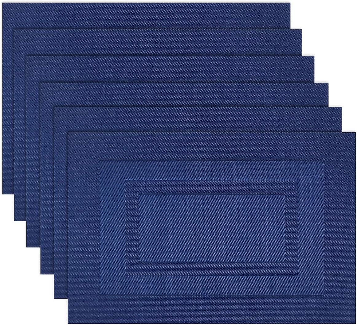 Placemats,Washable Woven Vinyl Placemats for Dining Table,Easy to Clean Plastic Placemats Set of 6(18 X12 inch, Navy Blue)