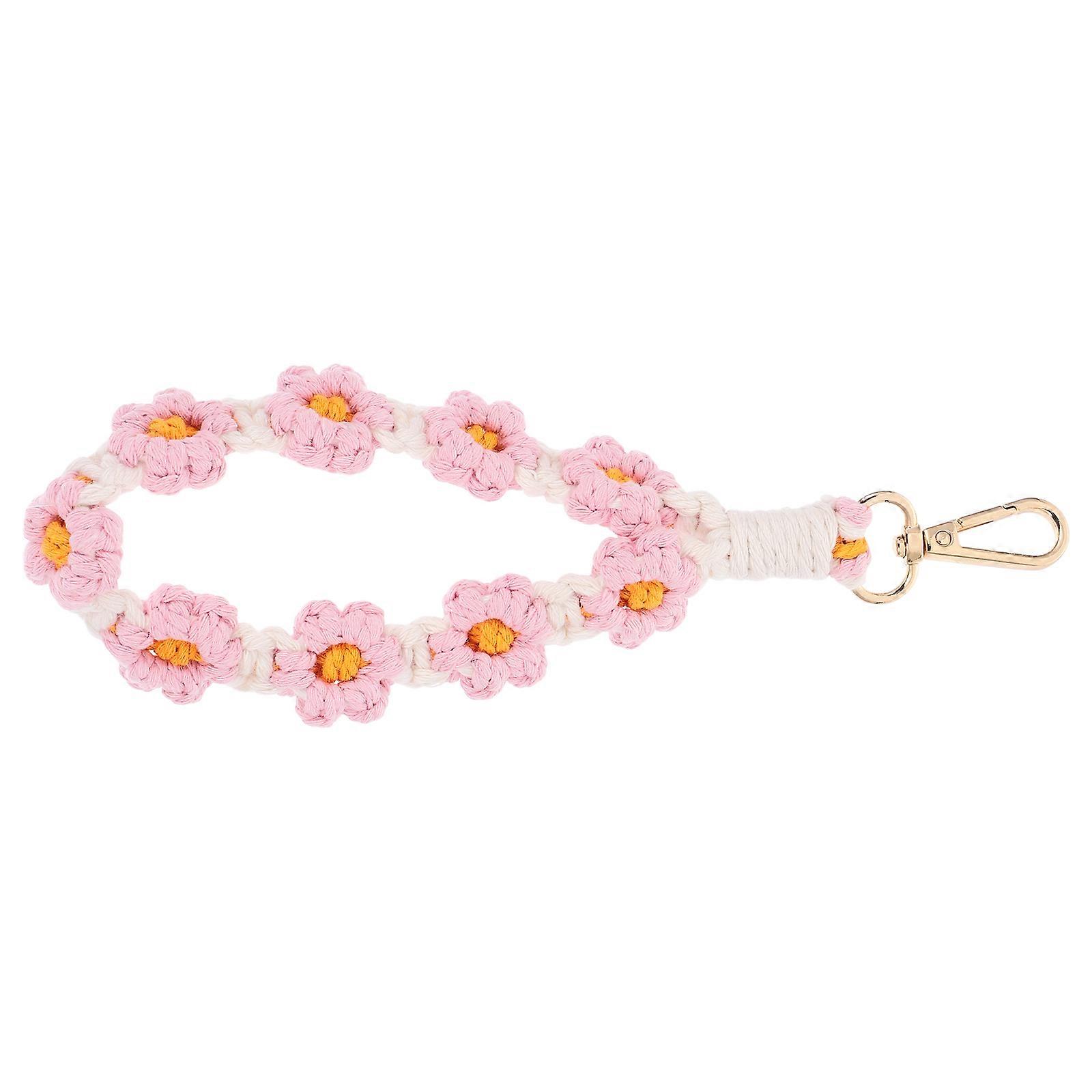 Key Wristlet For Women Flower Braided Wrist Hanging Rope Handbag Accessory Pink Total Length 21cm Wrist Accessory 1Pack