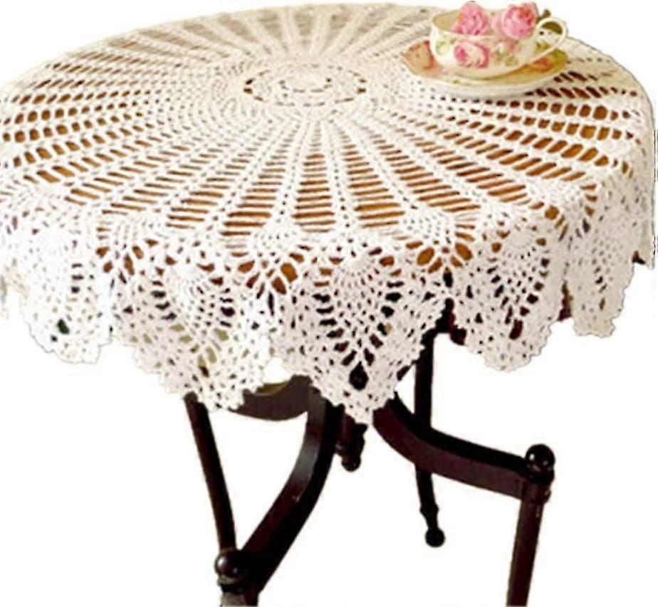 Handmade Vintage Round Lace Tablecloth Cotton 90cm, Cotton, White, 90cm Round