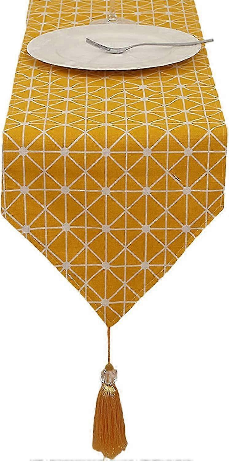 Linen and Cotton Tablecloth with Pom Poms, Modern Runner for Christmas Decoration, Washable