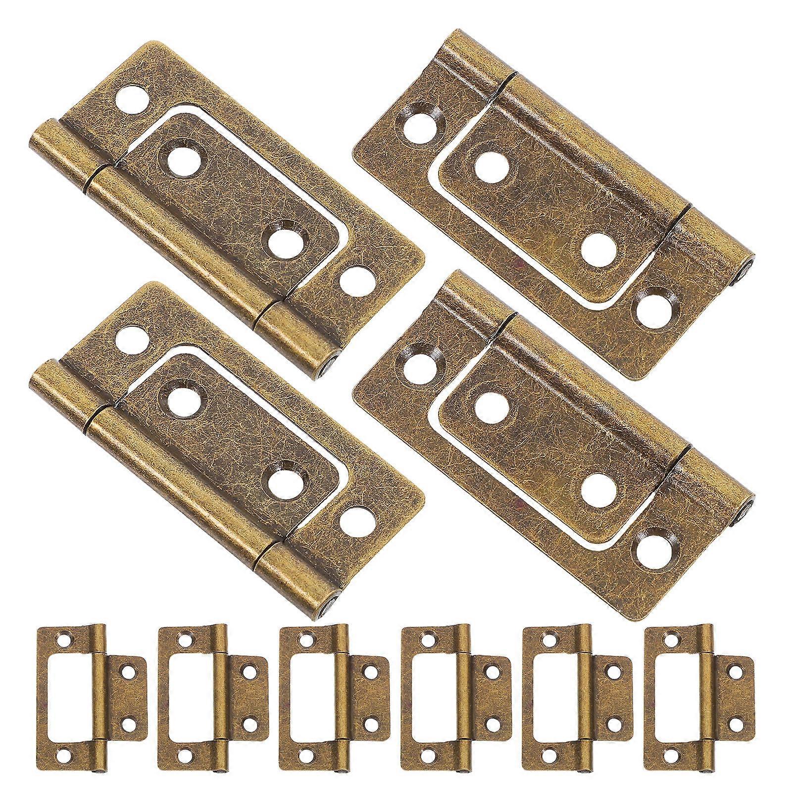 Add a vintage touch to your furniture with our durable iron hinges. The antique brass finish and thickened structure make these hinges both functional and decorative. They are ideal for use on bifold doors, cabinets, and windows, offering a ideal blend of style and durability for your projects. Features -Color:Olive Green -Material:Iron -Size:5.10X2.40X0.50cm/2.00X0.94X0.20in -Durable construction: crafted from thickened antique bronze iron, these hinges offer excellent durability and wear resistance. -Stable design: the thickened design ensures that the hinges remain stable and do not loosen easily. -Resistant to deformation: the robust antique bronze iron material prevents the hinges from deforming, ensuring longterm reliability. -Simple installation: these hinges are easy to install, making them suitable for a variety of furniture applications. -Versatile applications: ideal for a wide range of furniture, these hinges are ideal for use by furniture manufacturers and renovation companies. Package list: 12pcs x hinges