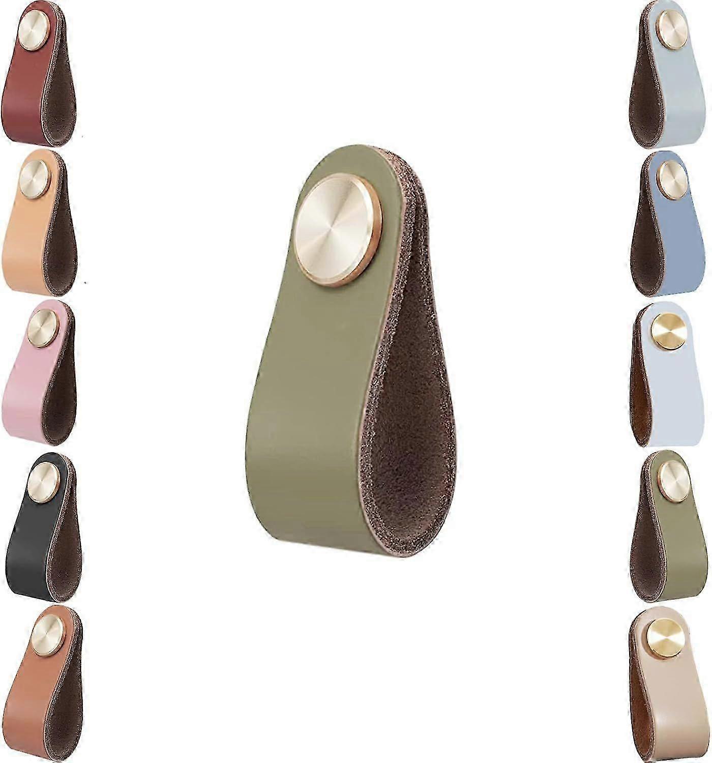 Leather Cabinet Handles, 2 Drawer Door Pulls, Anti-collision Retro Furniture Door Handles for Kitchen Dresser(Green)