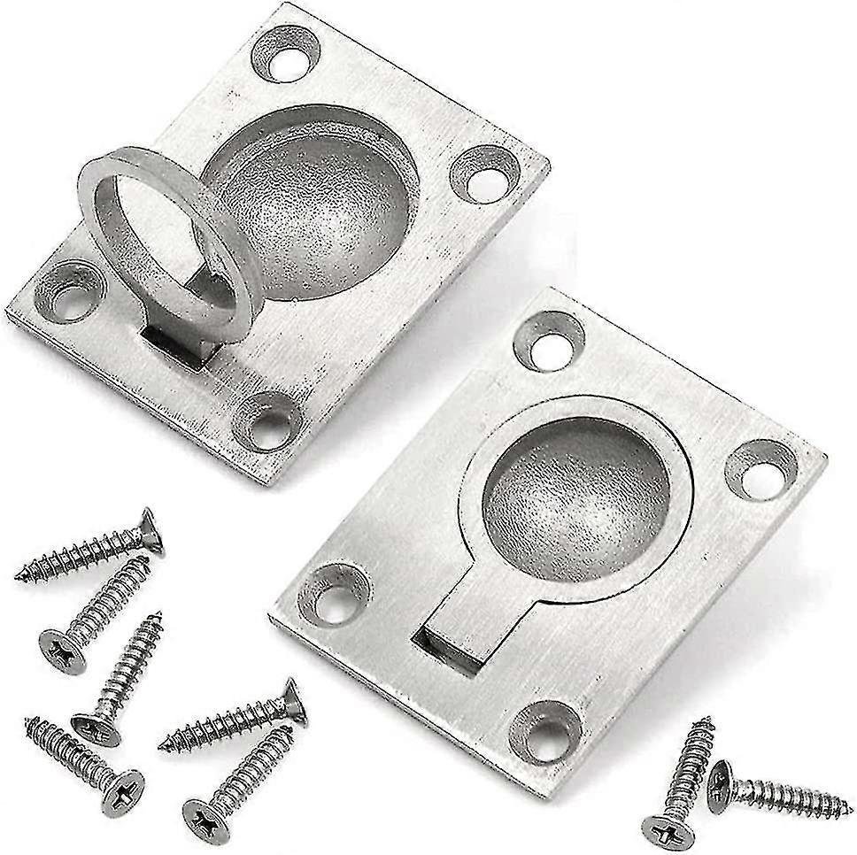 Flush Ring Pull Handles, 49 X 39mm Stainless Steel Boat Hatch Locker Marine Yacht Ring Pulls Hidden Cabinet Drawer Handle With Mounting Screws(2 Piece