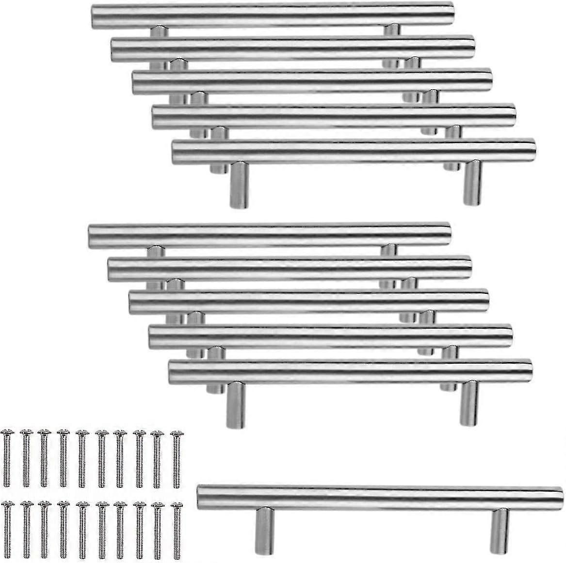 Furniture Knobs and Handles, 10 x Stainless Steel Kitchen Cabinet Handle 96mm Hole Spacing, Brushed Steel T-Handle for Cabinet Door