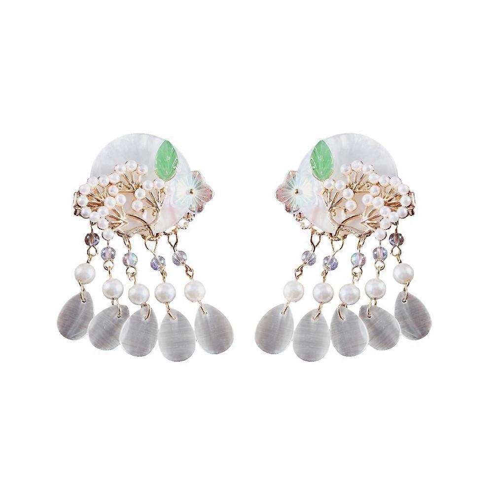Vintage Hair Clips Alloy Hair Shell Pearl Barrette Chinese Style Bobby for Woman (Golden)