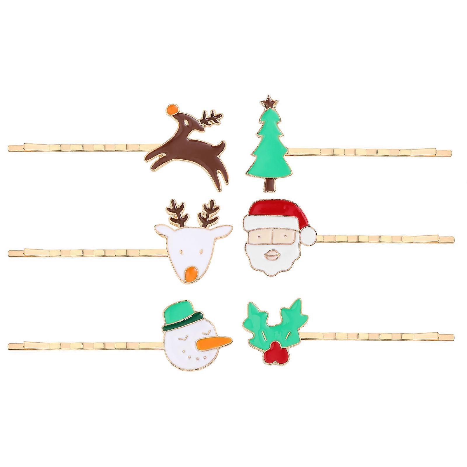 Adorable Christmas Kids Hair Clips with Alloy Pins for Festive Wear Assorted Color 6 Pieces