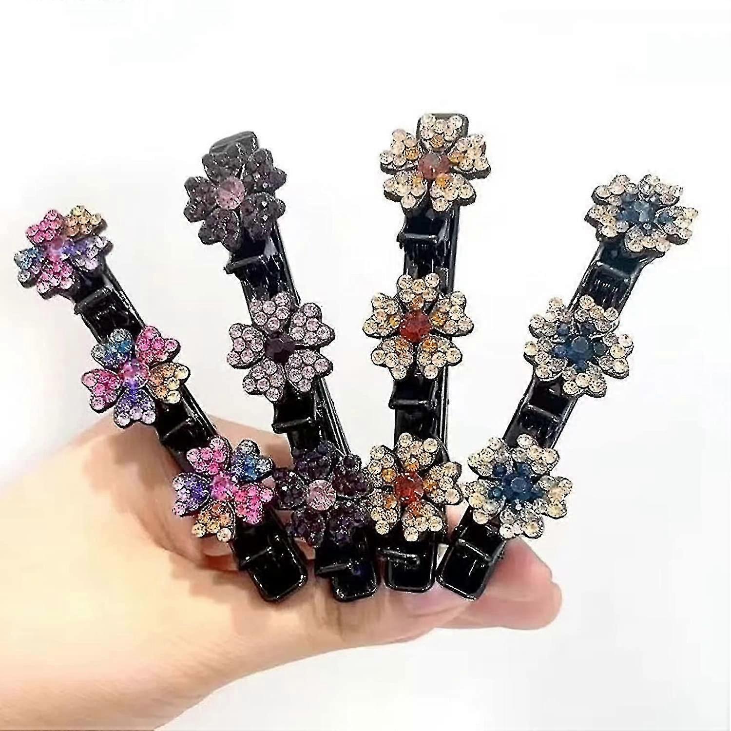 Sparkling Crystal Stone Braided Hair Clips For Women, Triple Hair Clips For Cutting With Rhinestones (3set (12pcs))