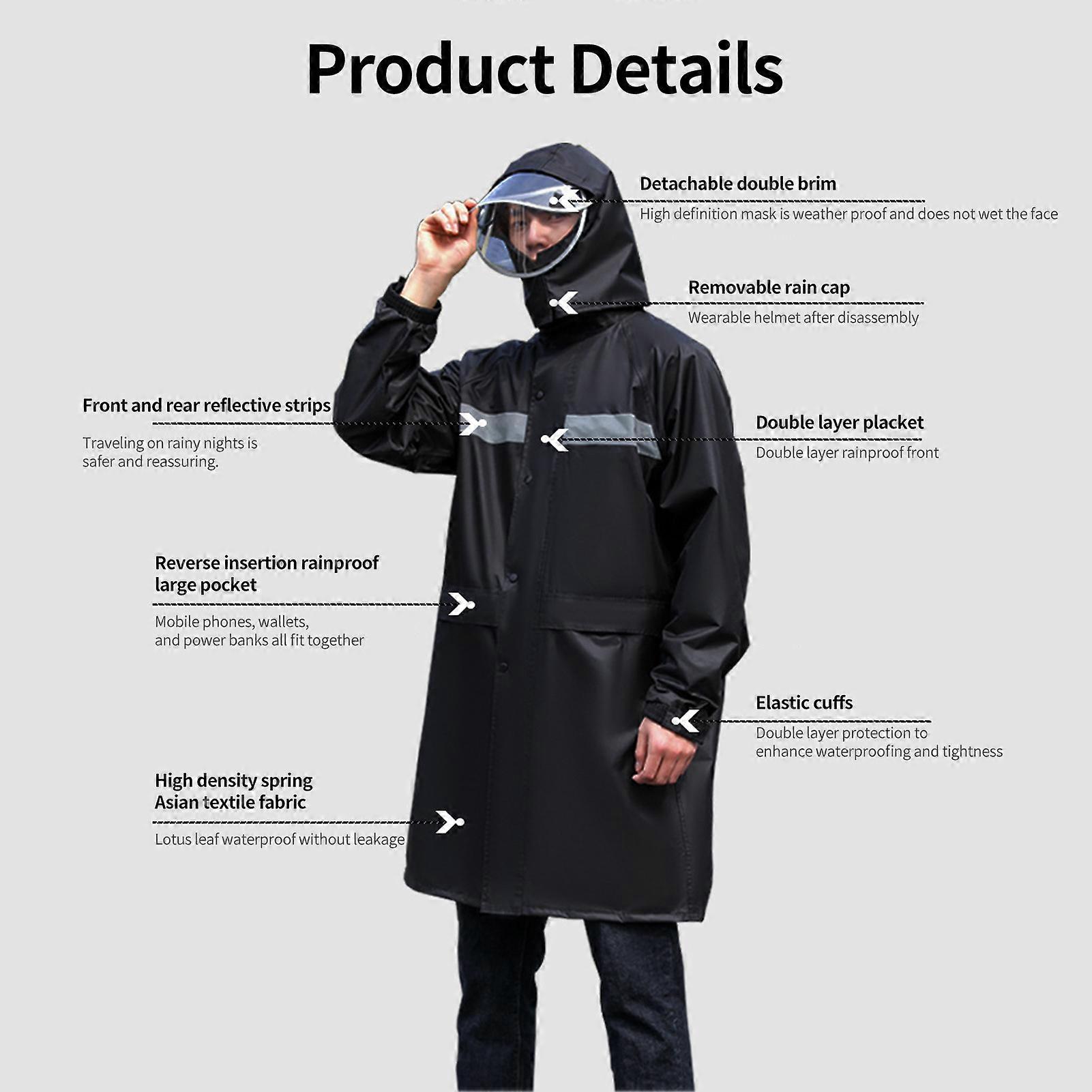Waterproof Long Hooded Raincoat Lightweight Rainwear Reflective with Pocket Hood for Men Women Adults