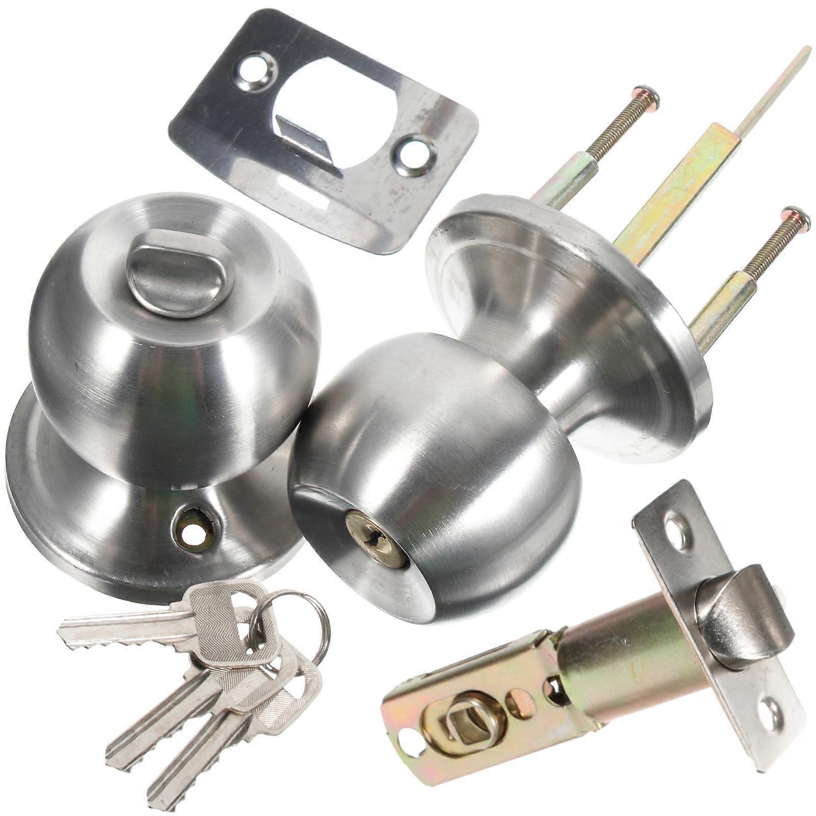 Stainless Steel Door Knob with Lock Set Durable Heavy Duty Entry Knob for Bedroom, Bathroom & Exterior Doors Interior & Exterior Use