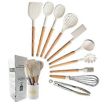 مقبض خشبي سيليكون أدوات المطبخ مجموعة 11 قطعة أداة المطبخ غير لاصقة ملعقة ملعقة
