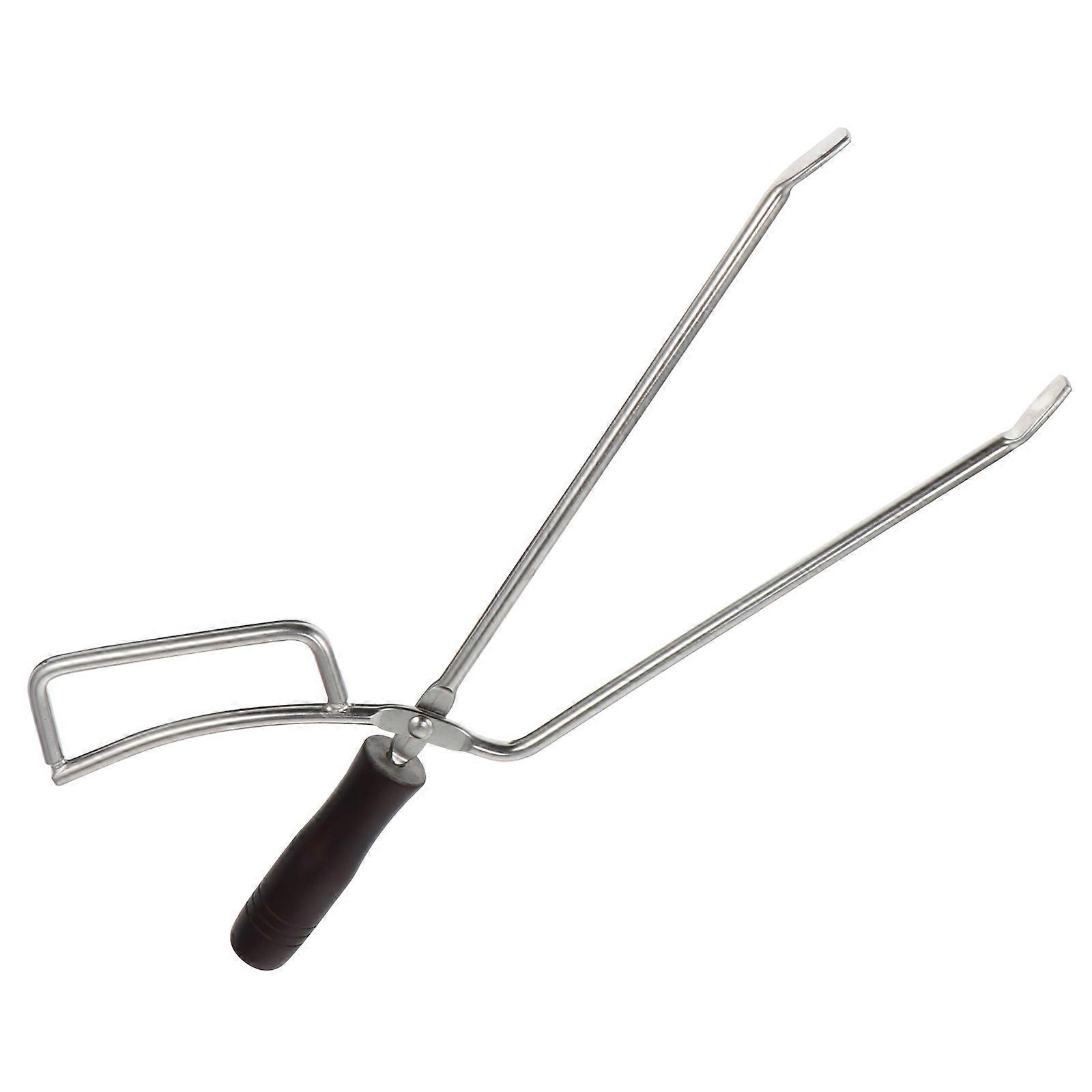Wood Handle Fire Tongs Barbecue Tool Anti-Slip Design 40x12cm Stainless Steel 1Pc