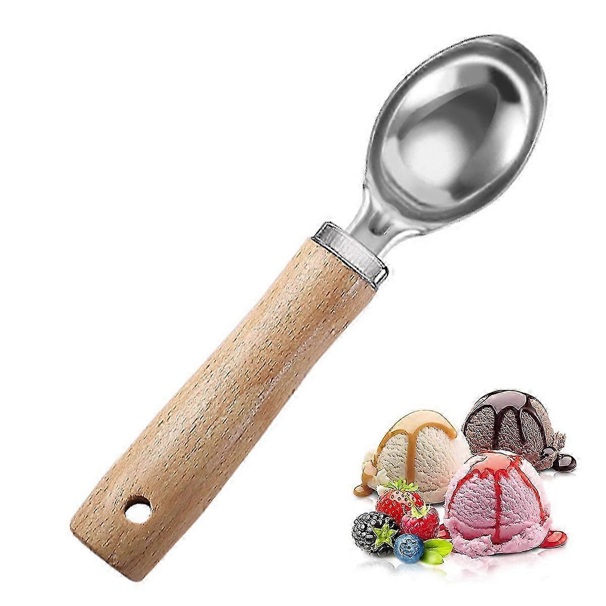 Wood Handle Stainless Steel Ice Cream Scoop - Dishwasher Safe Spade for Easy Serving