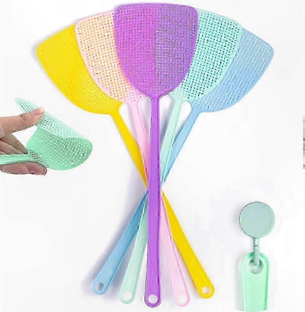 1. Premium Quality: Fly swatters made of high-quality plastic, flexible, durable, and lightweight, effectively helping to protect your home. This plastic fly swatter is easy to clean and won't scratch surfaces. 2. Convenient: Fly swatters with durable long handles are easy to use, even at a distance. The length of this fly swatter is 17.5 inches, and each swatter weighs less than one ounce. 3. Flexible: Lightweight (only 1 oz) and easy to use. The swatters are made of PP plastic, soft and flexible. The hook hanging design allows for convenient storage and portability. 4. Visible Design: Brightly colored for easy visibility, making it simple to locate when needed.