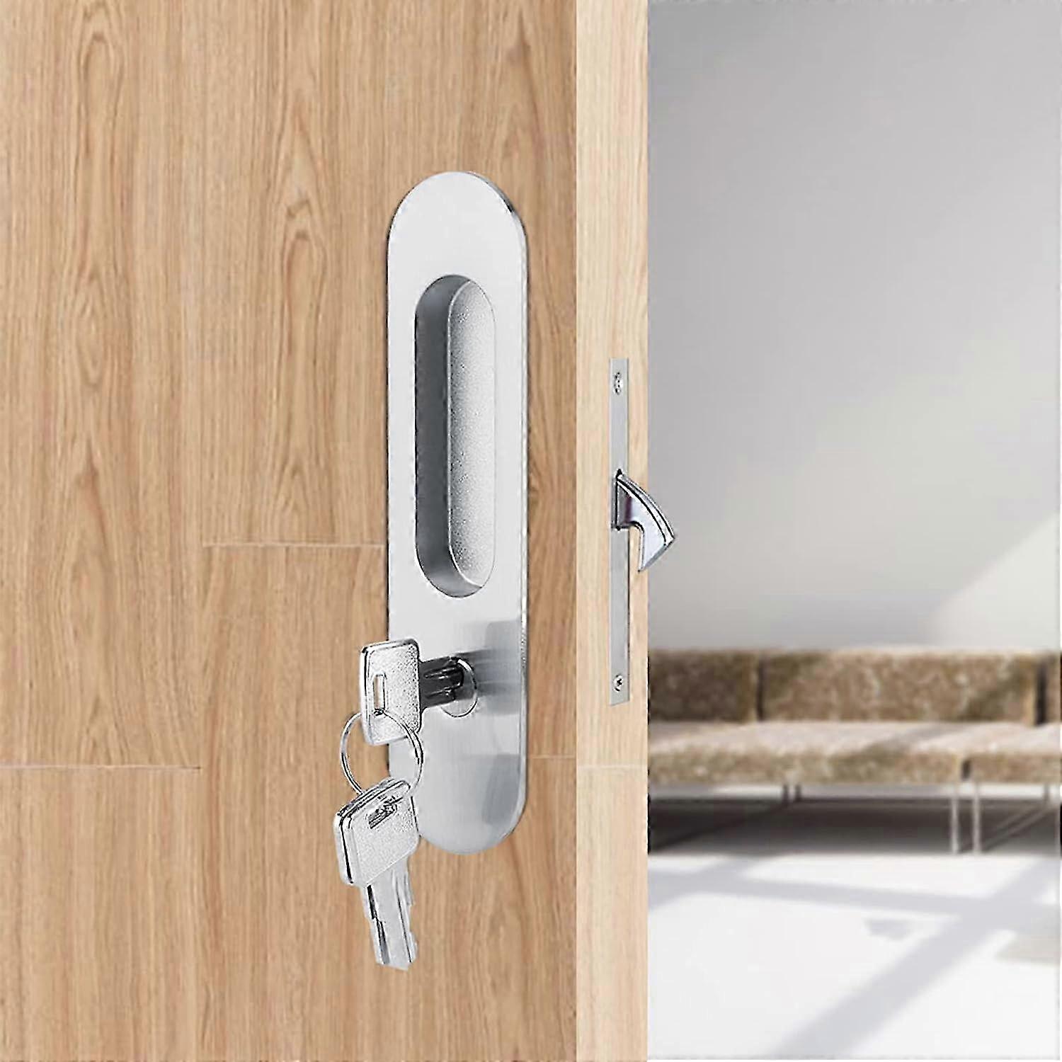 Sliding Door Lock Handle with Brushed Silver Finish for Barn Wood Furniture Security Solutions