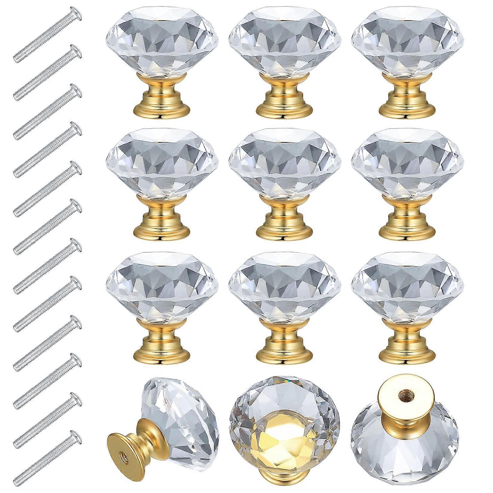 Sturdy and durable30mm Crystal Drawer Knob, crystal glass material, aluminum alloy base. The crystal has a strong adhesion to the base, is sturdy and durable, and can be used for a long time. Shining AppearanceThis crystal button is simple in texture and radiant, when the light shines on it. the facets of the knob, it sparkles on the furniture, leaving a beautiful prism, and the glossy appearance can play a decorative role. Quantity and packaging A total of 12 transparent cabinet handles, with 12 screws included, these products are packaging, each crystal knob is individually wrapped, scratch resistant. Design and sizeCrystal furniture knob, diamond design with polished edges, safe and easy to clean ; diameter: 3.1cm/1.22", height: 2.8cm/1.1", golden base: 1.6cm/0.63". Easy to useFind the hole to install, pass the screw through the back of the board and tighten the crystal glass knob. This Diamond Door Knob will add glamor to any piece of furniture and add a touch of elegance to the room.