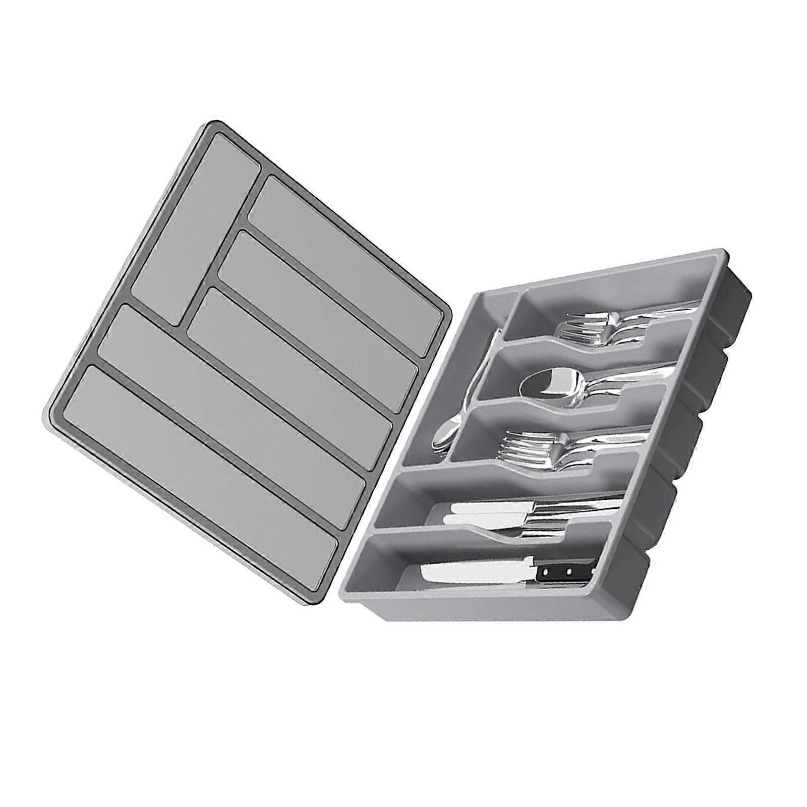 Convenient Drawer Storage Divider with Cover Drawer Divider Kitchen Drawer Organizer for Spoons and Forks grey