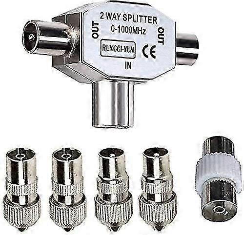 T-shaped antenna splitter - 2-way antenna distributor - 2x coaxial socket for DVB-T/BK - 0-1000 MHz - TV power coupler