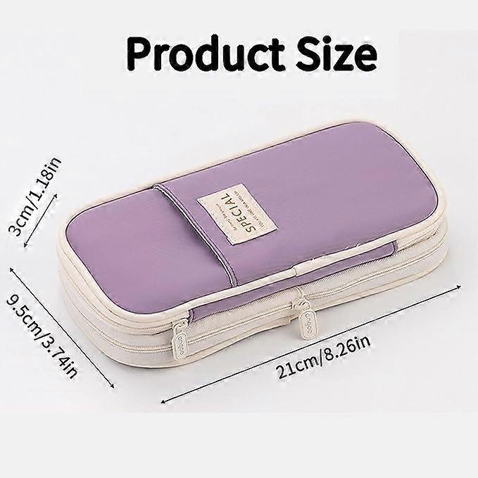 Large Capacitykids pencil case has a large storage space,it provides a provides roomy space for holding pens, pencils, sharpeners, erasers, scissors and other accessories,including a mesh zipper pocket holds receipts, stickers and post-it notes.It also comes with a front pocket for your phone, calculator or any other.Unique DesignsOur aesthetic pencil case is made of high quality fabric and sturdy zipper,very durable,double-layer large-capacity, neatly classified storage.5 rubber band slots for frequently used pens, and the mesh pocket design makes it difficult for the pen to slip off.Using high quality zipper, very textured, smooth and wearable.Multi-functionalThis cute pencil case can fit multi practical needs for different people, can be used as a craft pouch, storage bag, cosmetic bag, makeup bag for women girls. The main zip compartment can easily fit markers, brush pens and graphing calculator, and the compartment inside can store erasers, sticky notes or other items to keep everything organized.Premium Material Our pencil cases for teenage is made of high quality polyester, extremely durable, anti scratch, dirt resistant, water proof and smooth & durable zipper for easy use. The girls pencil cases strong zippers and wide zip angle ensure smooth open/close and tight protection.Ideal GiftThis small pencil case has a simple and stylish design style, which is a great gift for kids,friends,colleagues,birthday present or back to school supplies. (Warm Note:Pens and other stationery not included, only pencil case sold)Product information:Material:polyesterClose Size:21cm/8.26in x9.5cm/3.74in x3cm/1.18inOpen Size:21cm/8.26n x9.5cm/3.74in x7cm/2.76inPacking List:1 x Pencil CaseNote:Light shooting and different displays may cause the color of the item in the picture a little different from the real thing. Manual measuring,please allow 1~3cm error,thank you.