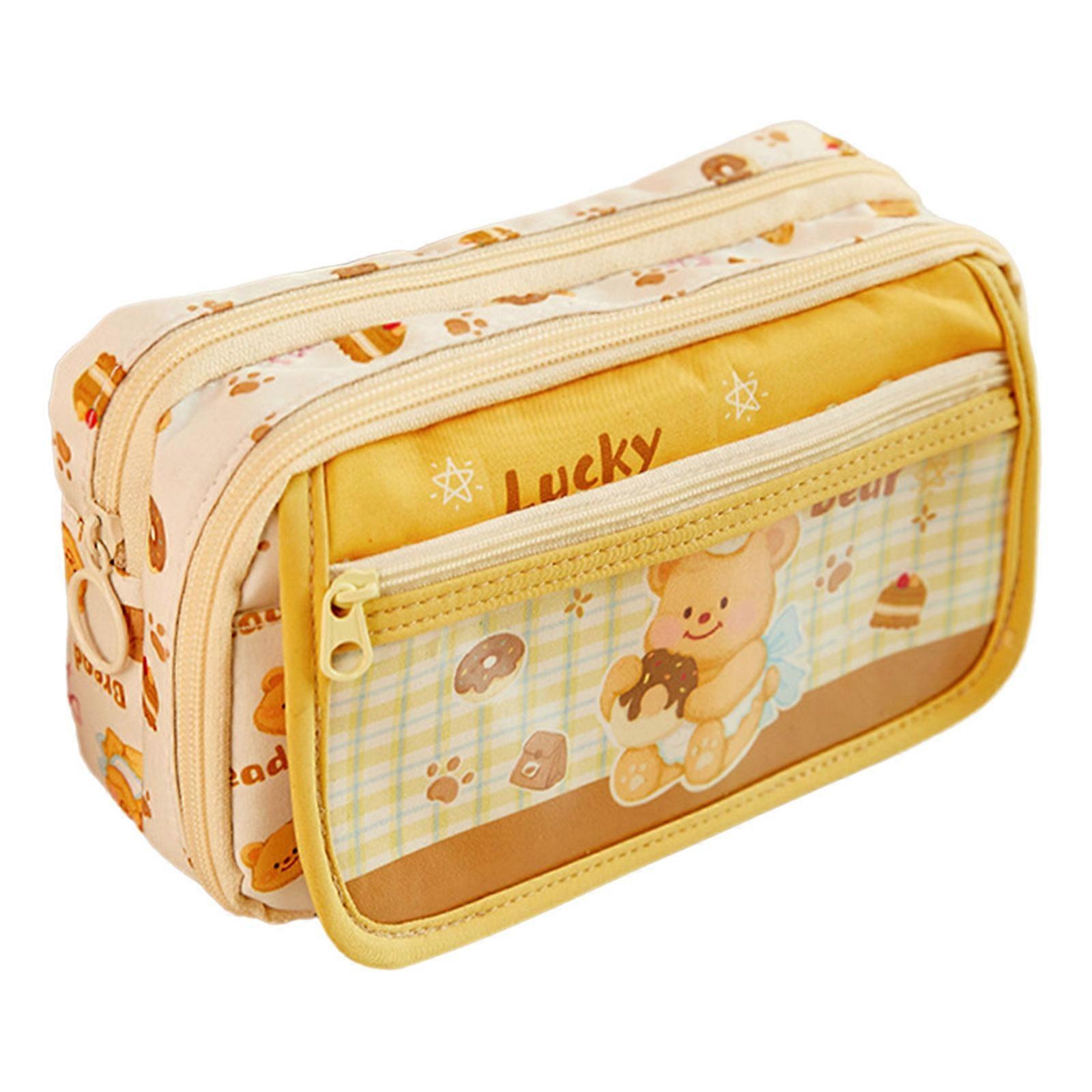 Large Pencil Case High Capacity Pen Holder Box Zippered Pencil Bag Pen Pouches Desk Organizers For School Office Travel Yellow