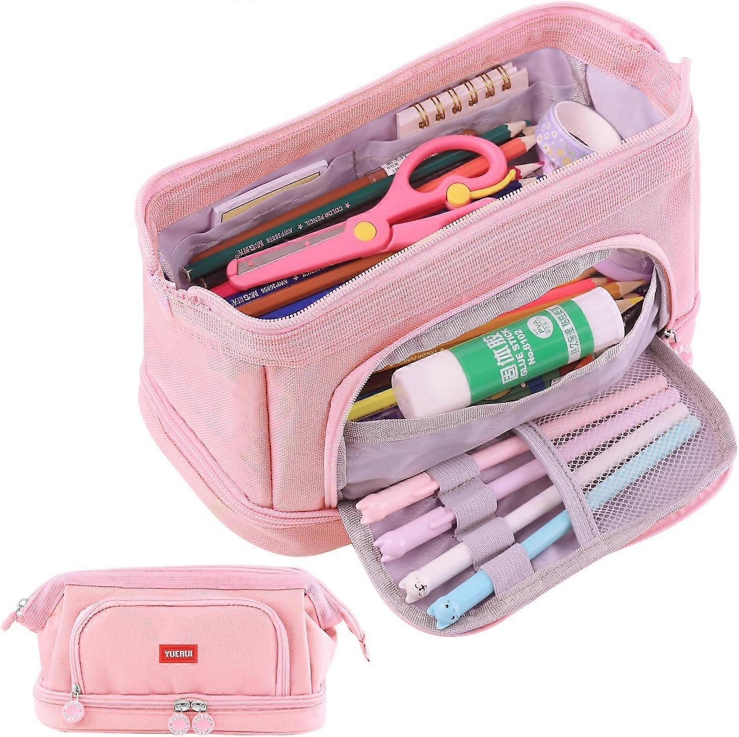 Cute Preppy Pencil Case - Large Capacity Pencil Bag for Girls - Ideal for School Supplies and Organization (Pink)