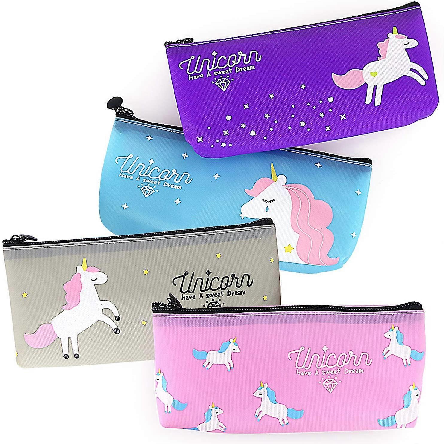 Unicorn Pencil Case, 4 Pack High Capacity Cute Pencil Pouch Holder School Stationery Multifunction Cosmetic Makeup Bag, Perfect Zipper Pencils and Pen