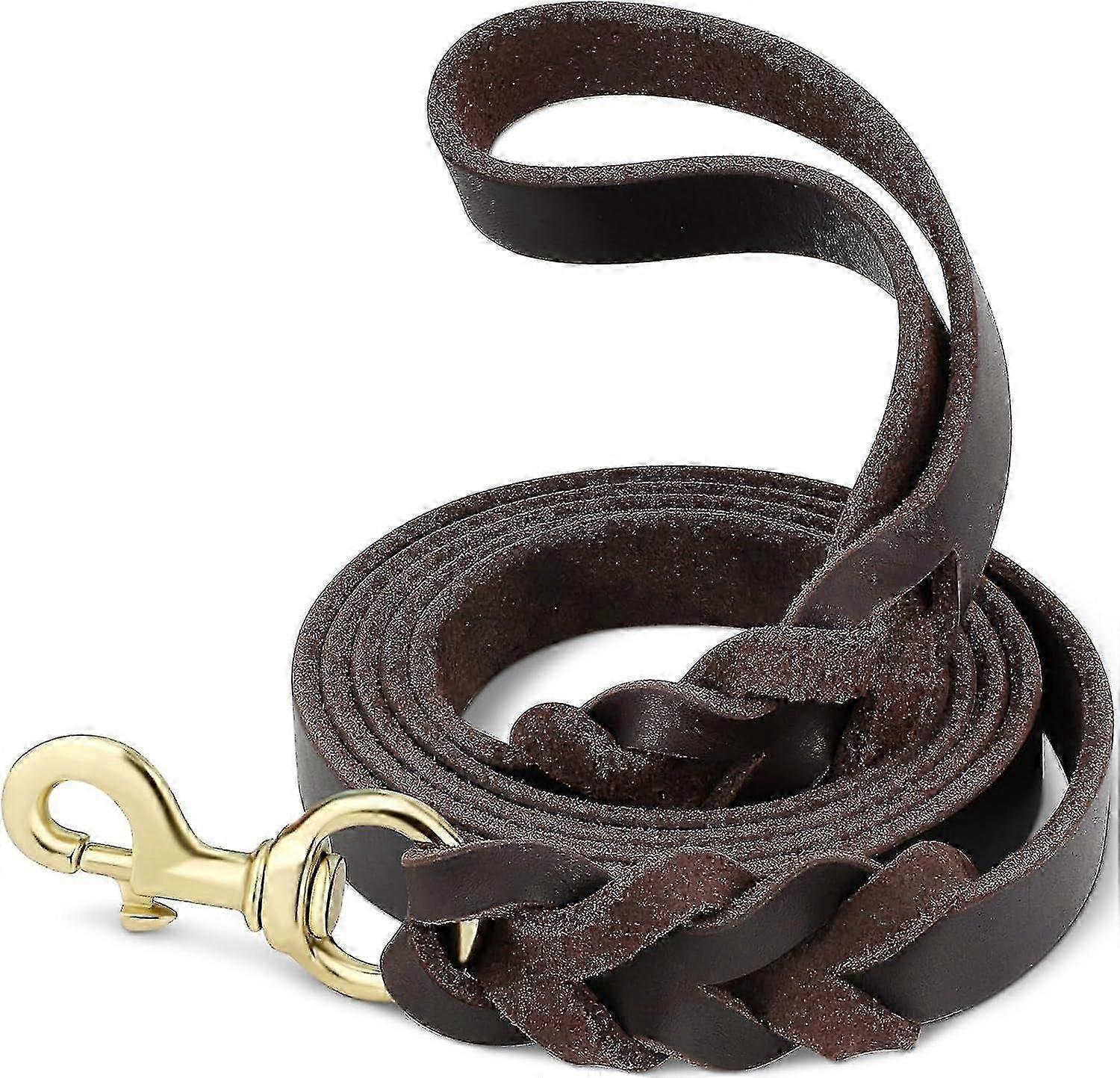 Leather Dog Leash, Hand Knitting Leather Dog Leash, Genuine Leather Durability Leather Leash For Large Medium Small Dogs, Brass Clasp, Brown, 1.2m*2cm