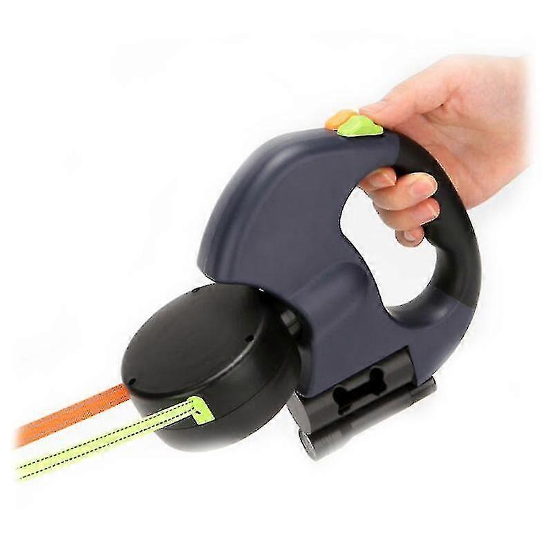 Black Dual Retractable Dog Leash - Heavy Duty Double Headed Extendable Dog Leash For Small Medium Dogs Walking Training, With Led Flashlight Walk 2 D