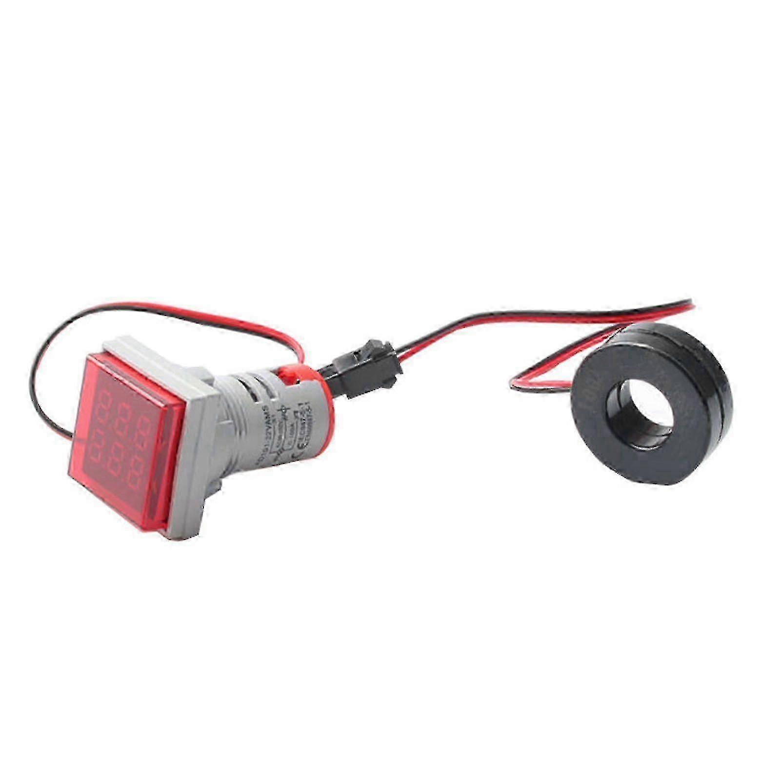 Voltage and current meter digital multimeter small square current and voltage meter LED light AC50-500V 0-100A 22mm red