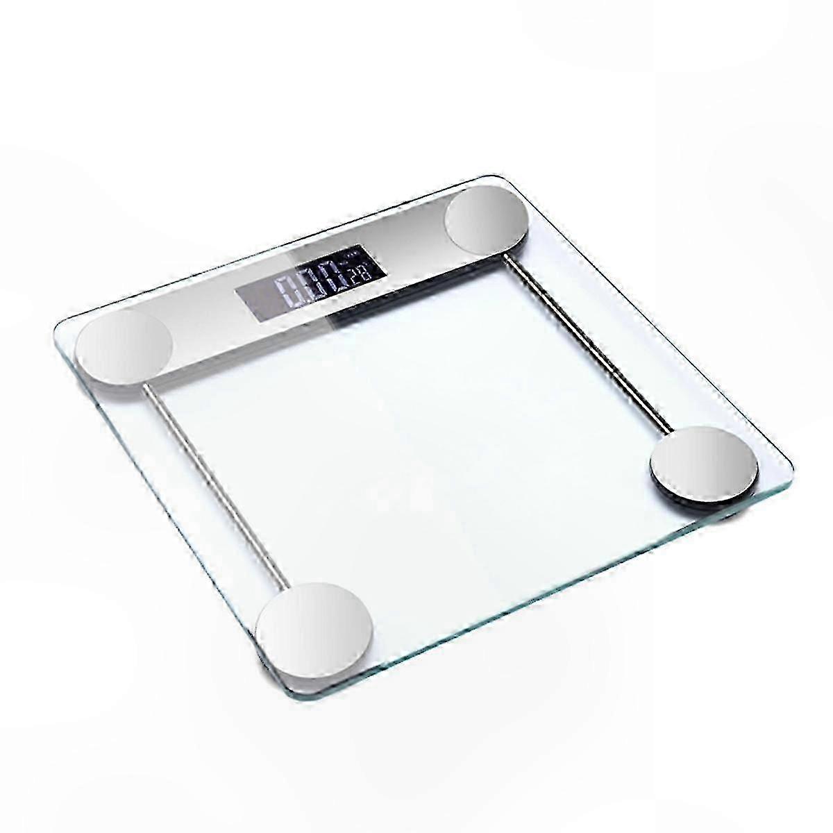 Digital Glass Bathroom Scale; 400 lb capacity; Elegant Finish Bath Scale. Color: silver; Material: Glass; Size: 28 x 28 cm; Package Contents: 1 x weighing scale. Only the above package content, other products are not included. Note: Light reflection and different displays may cause the color of the item in the picture to be slightly different from the real thing. The measurement allowed error is +/- 1-3 cm.