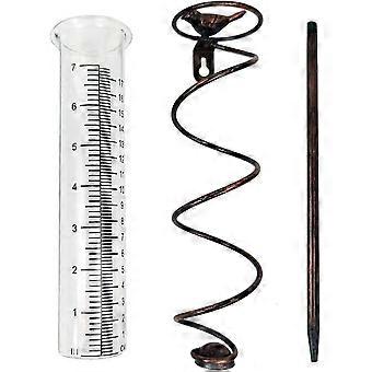 Decorative Rain Gauge, Spiral Metal Glass Tube with Bird Figurine, Waterproof and Dustproof