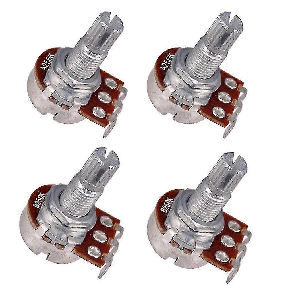 Long Knurled and split shaft, Full Size Perfect for replacing and upgrading volume and controls A25K/- mini control pot Coarse knurled shaft fits most control knobs Suitable for electric guitar with 18mm potentiometer Specification: Shaft Length: 18mm Shaft Diameter: 7mm Base Diameter: 17mm Package Includes: 2 Pieces A250K Potentiometers 2 Pieces B250K Potentiometers Note: Color might be slightly different due to the color calibration of each individual monitor. Please allow slightly measuring deviation due to manual measurement.