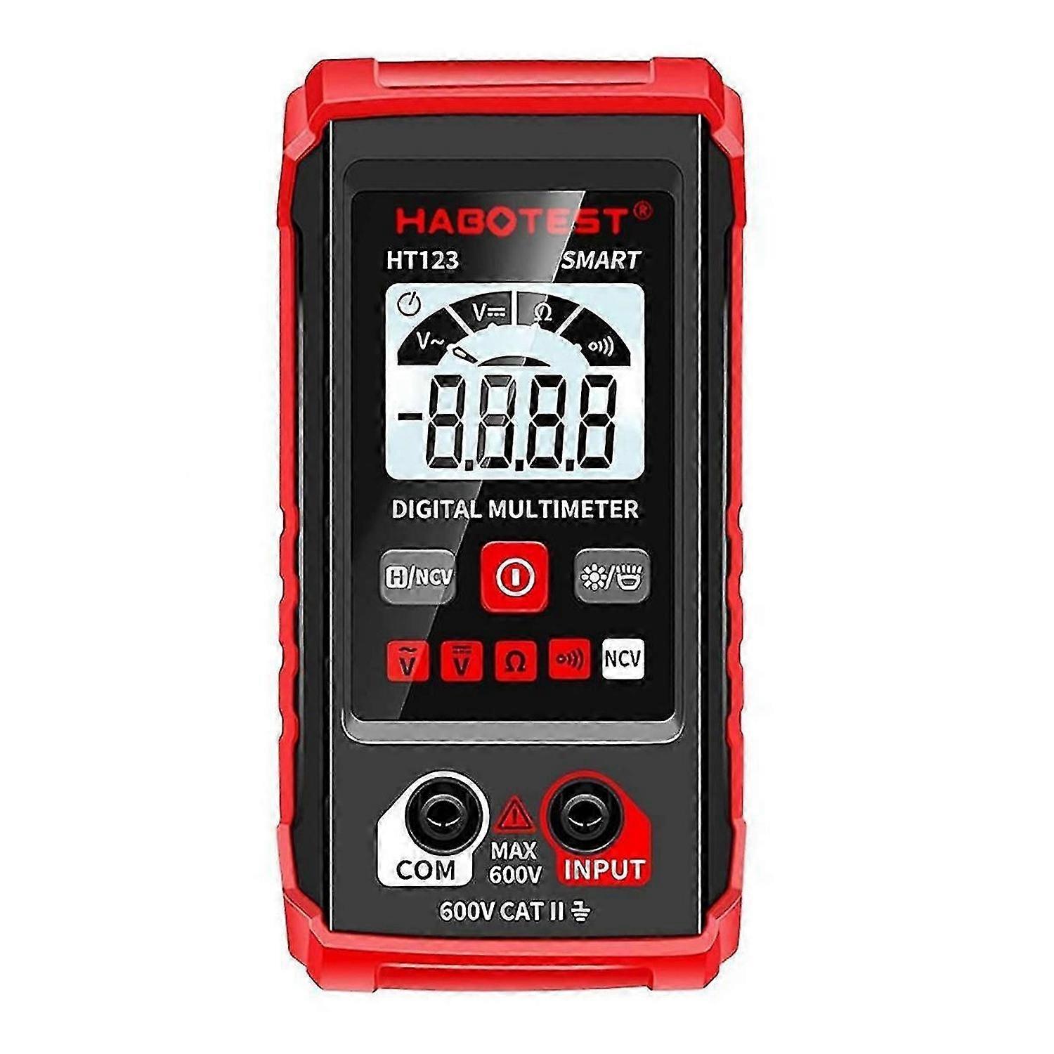 With the HT Automatic Digital Multimeter's Mode, it lets you quickly switch between all measurement tasks, including AC voltage, resistance and continuity, without having to select a mode or range. It makes measurement work simple, fast and accurate Digital Multimeter Completely safe non- voltage testing with visual and audible alarms; a time-saving and safe feature. TM-510 Digital Multimeter External Silicone Cover protects automatic digital multimeters from damage and potential You can use the digital multimeter TM-510 to intelligently measure voltage on AC power lines without connecting wires, making lines troubleshooting much easier Has passed and RoHS certification. Overload protection measures are adopted inside the instrument to improve the security performance of the product and maximize user security. The electric automatic digital multimeter supports data retention, automatic shutdown, low battery indicator, backlight display, and flashlight functions. All these convenient features make this instrument adequate for daily use by hobbyists, car owners, and homeowners. Simple and easy to use, enjoy endless fun.<br><br>voltage: 0.8-600V (: 610V)AC Resistance: 600k Count: 2,000 counts NCV: Yes Display with gear display: Yes Data retention: Yes Backlight: Yes Light: Yes LowIndication: Yes Auto Power Off: Yes Material: ABS Power Layer: 2x1.5V AAA (not included) how to use: Step 1. Please remove the rubber cover on the back of the multimeter, open the battery back cover, and put 2 AAA battery into the battery compartment according to the polarity marks. Replace the battery cover. . Turn on the multimeter, insert the test leads according to the prompts, and enter the test after contacting both ends of the test leads for calibration. Step 3. Measure voltage, resistance or continuity. Insert the test leads into the multimeter and connect them to both ends of the object being measured. The multimeter automatically measures without user selection.notes:If you want to use the NCV function, you do not need to use test leads. Colour:As Shown Material:Plastic<br><br>Package Contents: 1x Smart Digital Multimeter<br><br>Only the above package content, other products are not included. Note: Light reflection and different displays may cause the color of the item in the picture a little different from the real thing. The measurement allowed error is +/- 1-3cm.