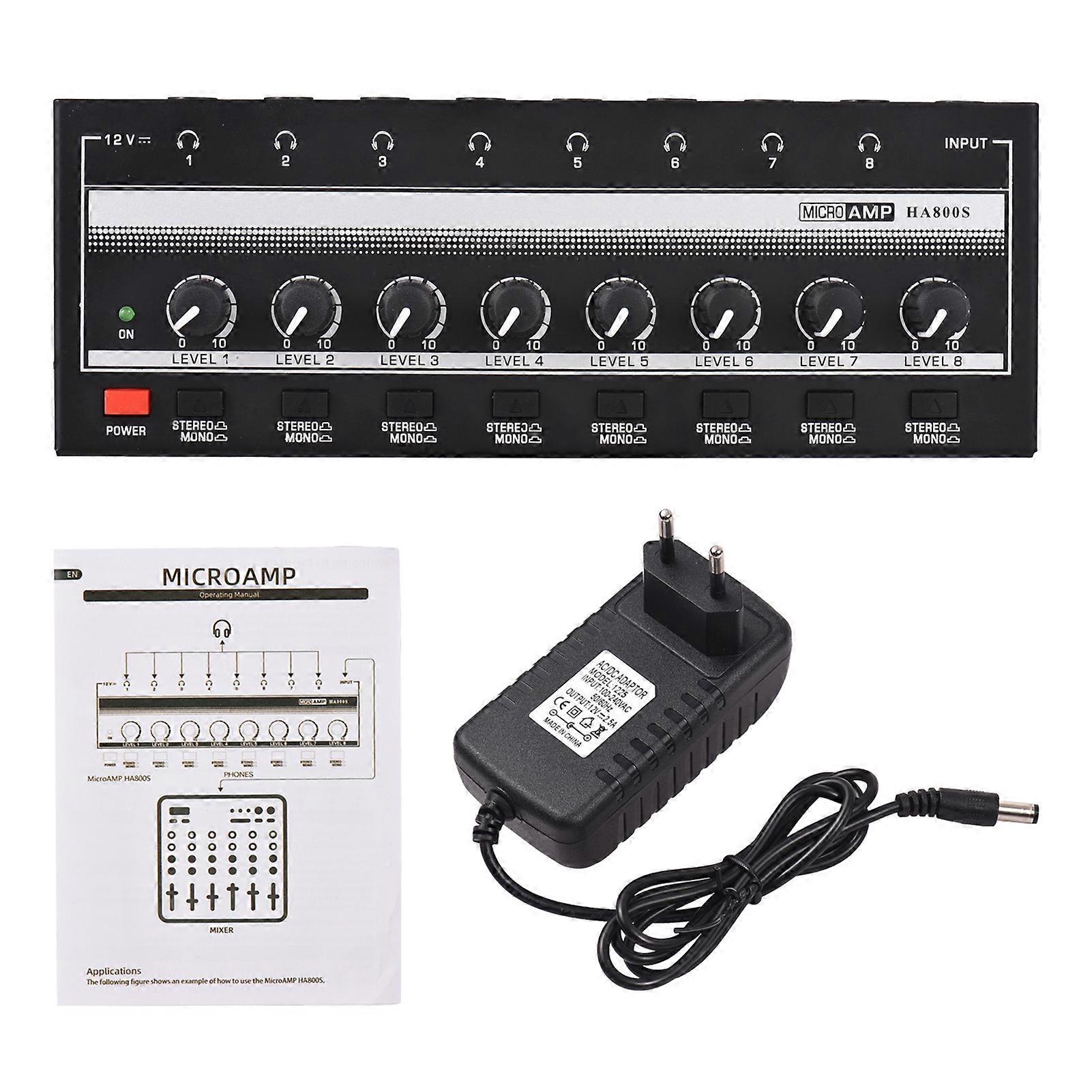 HA800S Amplifier 8 Channels Mono/Stereo Metal Headphone Amps Amp. Ultra-compact 8-Channel Mini o Stereo Microphone AMP. with Power Adapter