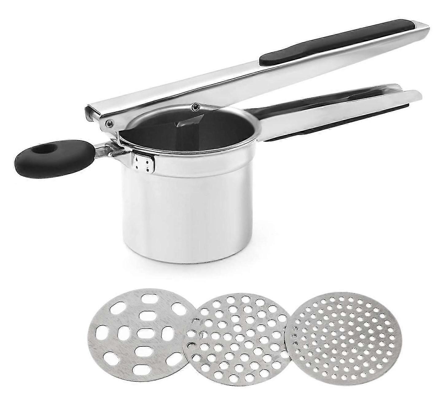 Stainless Steel Potato Press With 3 Perforated Discs