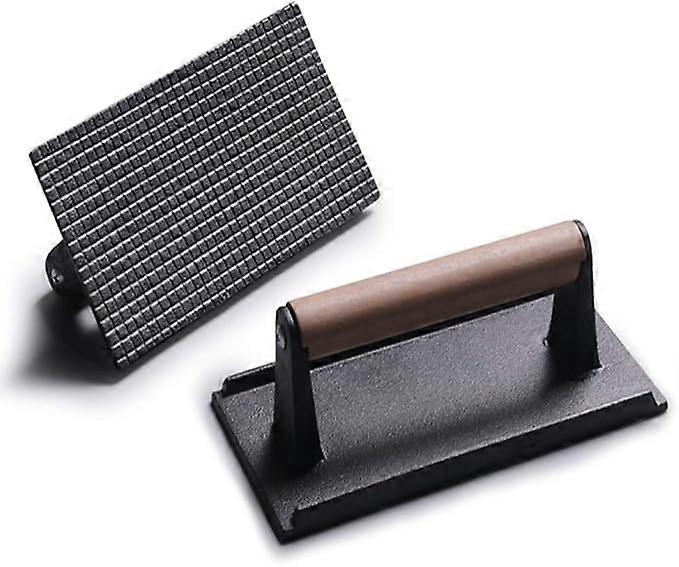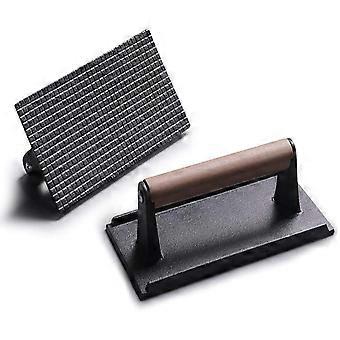 Cast Iron Grill Press (Wooden Handle), Hamburger, Bacon, Grill Press, 8.26" x 4.33", Black