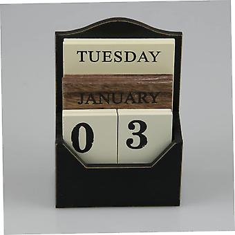 Wooden Desk Calendar Vintage Wooden Block Perpetual Calendar Wooden Environment Office Home Desktop Decoration (black) 1pc