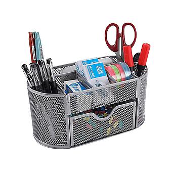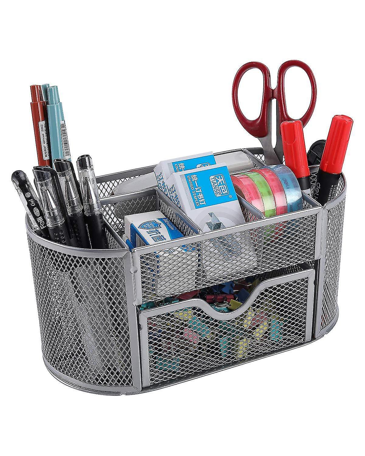 Office Mesh Desk Tidy Versatile Stationery Storage Desktop Organiser Pen Holder With Drawer,silver