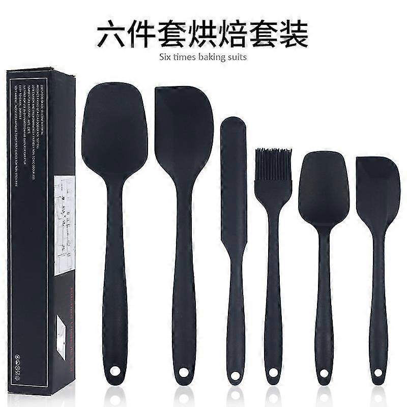 Dough Scraper Silicone Spatula Silicone Dough Spatula Set Cooking Spoon and Spatula (Black 6-Piece Set)