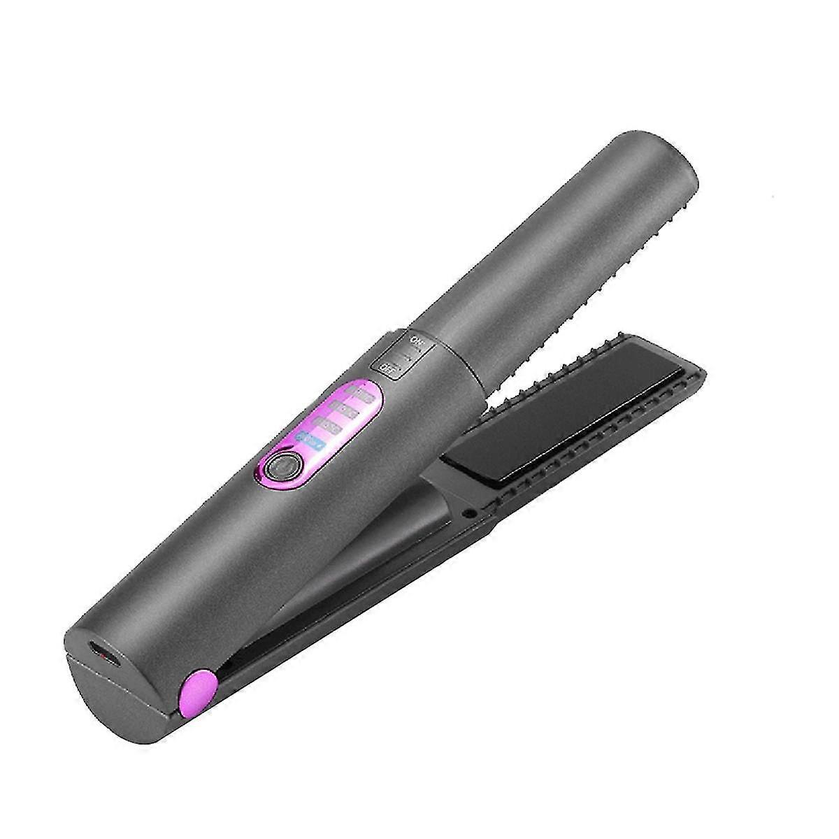 Cordless Hair Straightener, Flat Iron 2 In 1, Portable With Usb-c Rechargeable 5000mah Battery, Ceramic Plate Grey