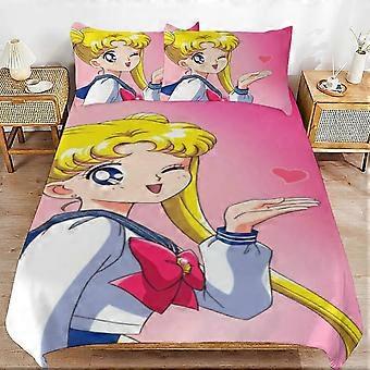 ملاءات السرير Sailor Moon مجموعات الفراش غطاء لحاف فائق النعومة صديق للبشرة 3 قطع ، طقم سرير غطاء معزي لطيف